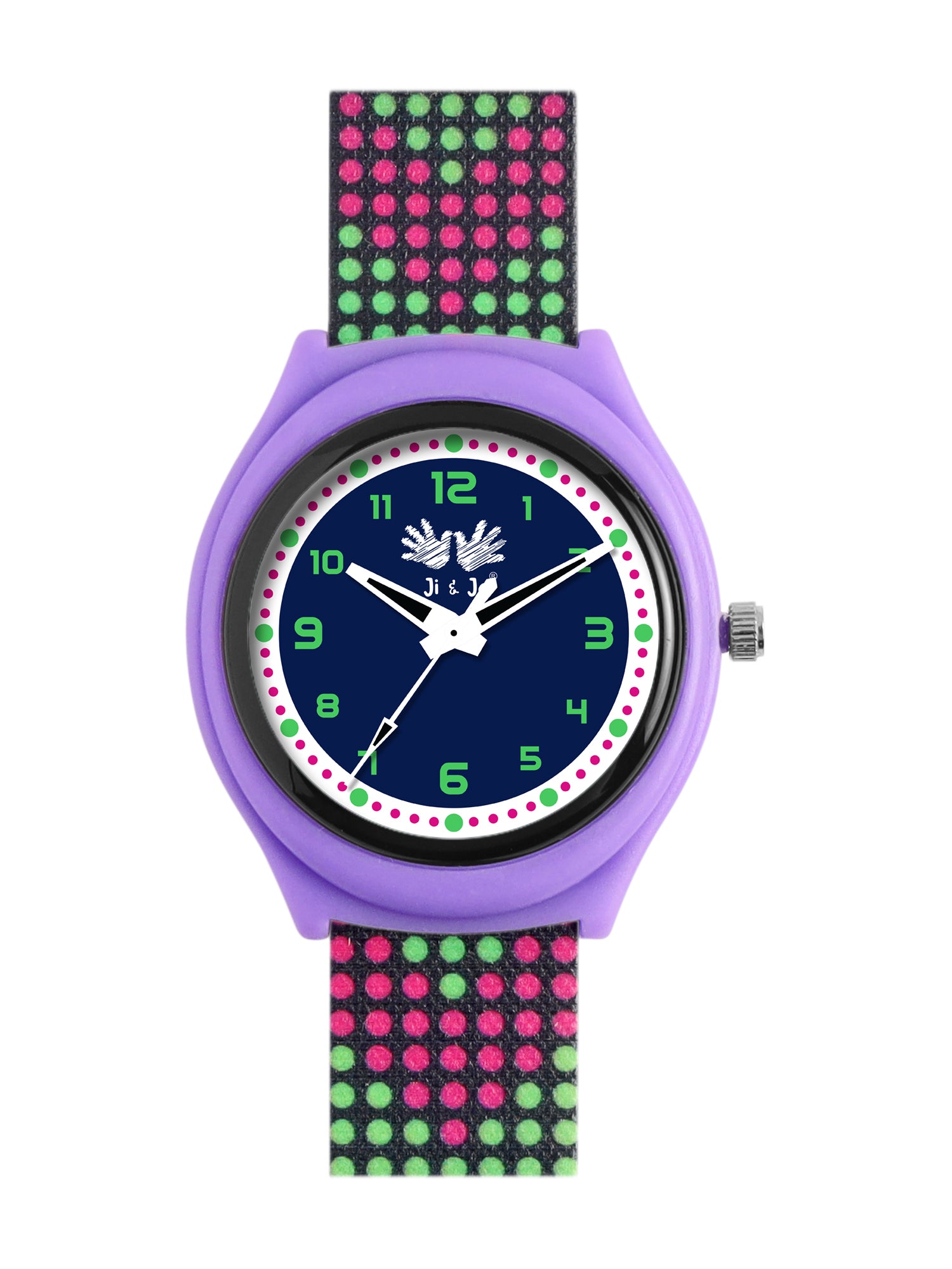 Add a playful yet functional accessory to your child’s wardrobe with this vibrant analog watch. Featuring a sleek black dial with green numerals and a fun multicolor strap, this timepiece is both engaging and easy to read. The lightweight silicone strap ensures comfort, while the bold design sparks imagination. Perfect for everyday adventures and learning to tell time with style.