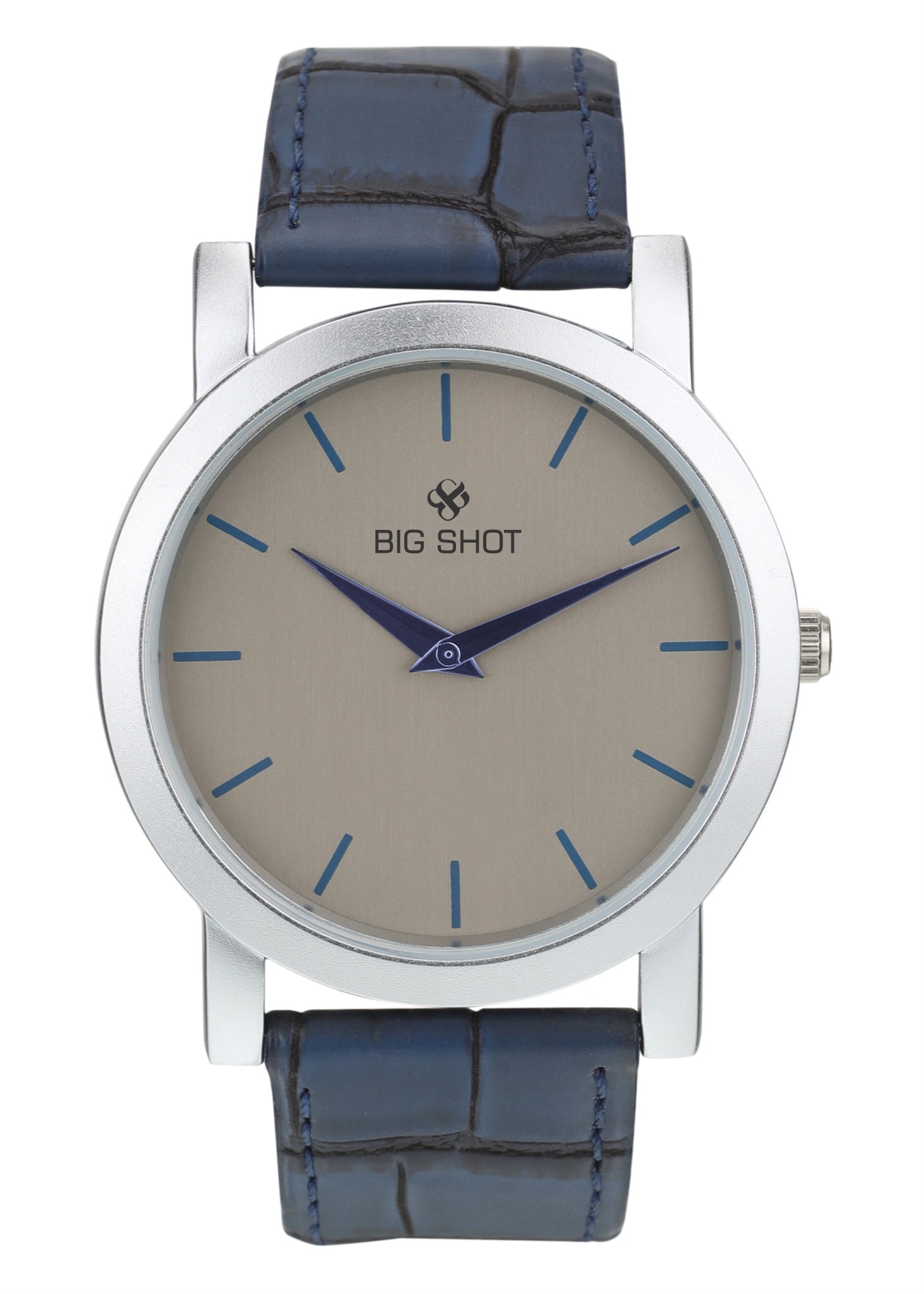 The Big Shot men’s watch embodies elegance in simplicity. Featuring a clean beige dial with striking blue markers and matching blue hands, it adds a refined touch to any look. Paired with a textured blue leather strap, this timepiece balances modern minimalism with classic sophistication, making it suitable for both formal and casual wear.