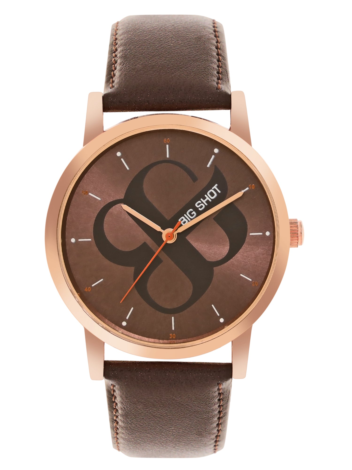 The Big Shot men’s watch is designed to reflect bold individuality and modern style. Featuring a rich brown sunray dial with an oversized “BS” logo detail, it is encased in a sophisticated rose gold-tone frame. The premium brown leather strap ensures comfort while adding a refined touch, making this watch an excellent choice for both casual and formal wear.