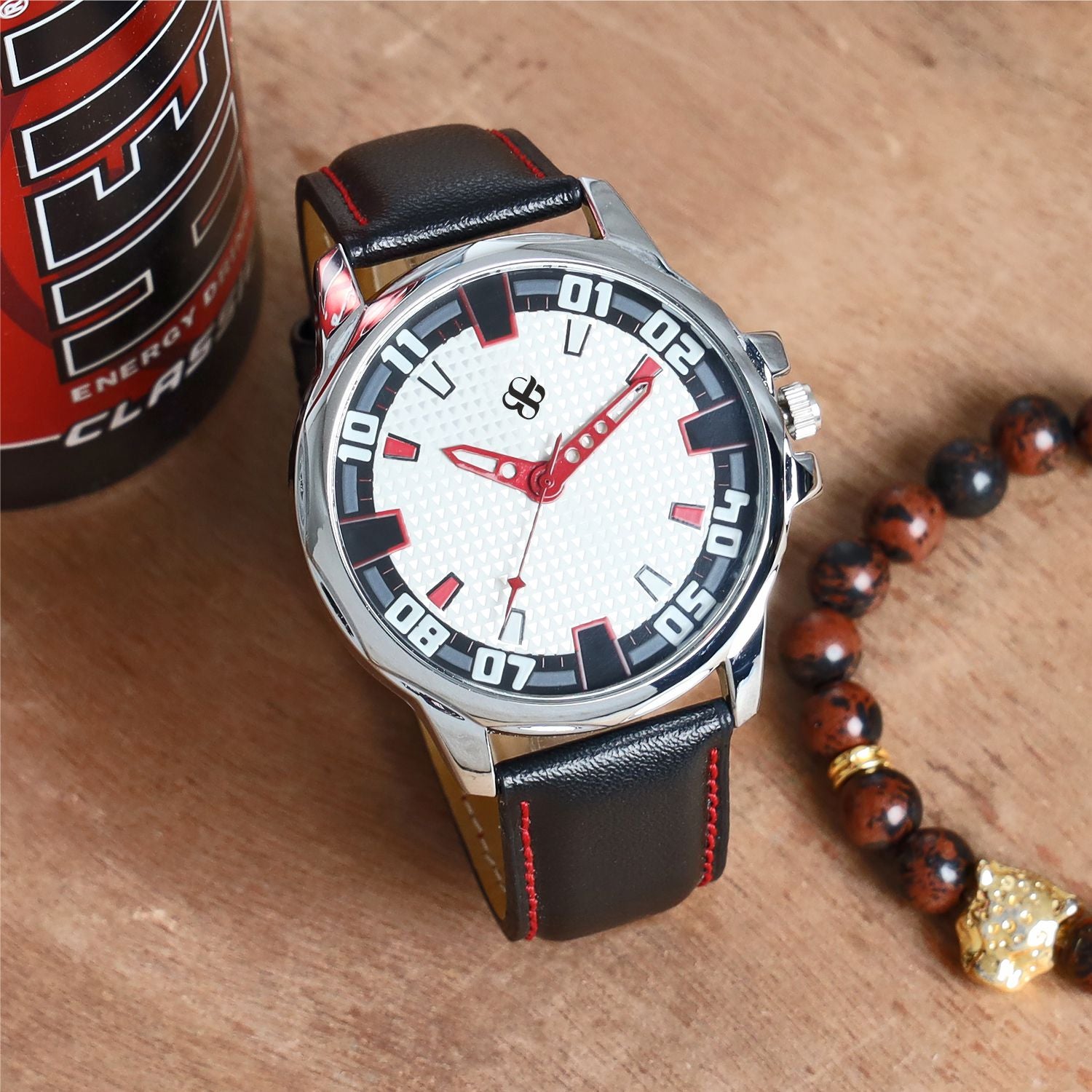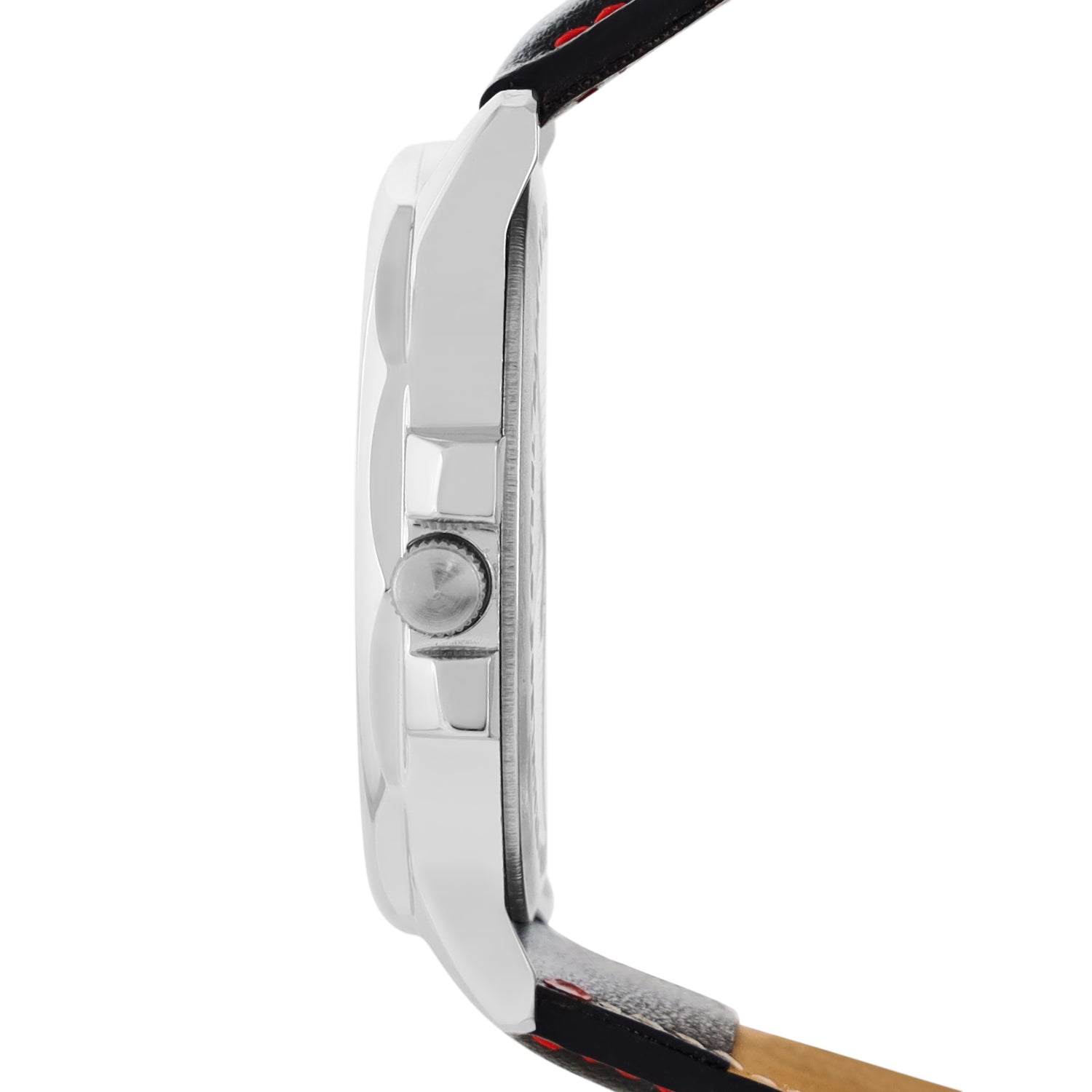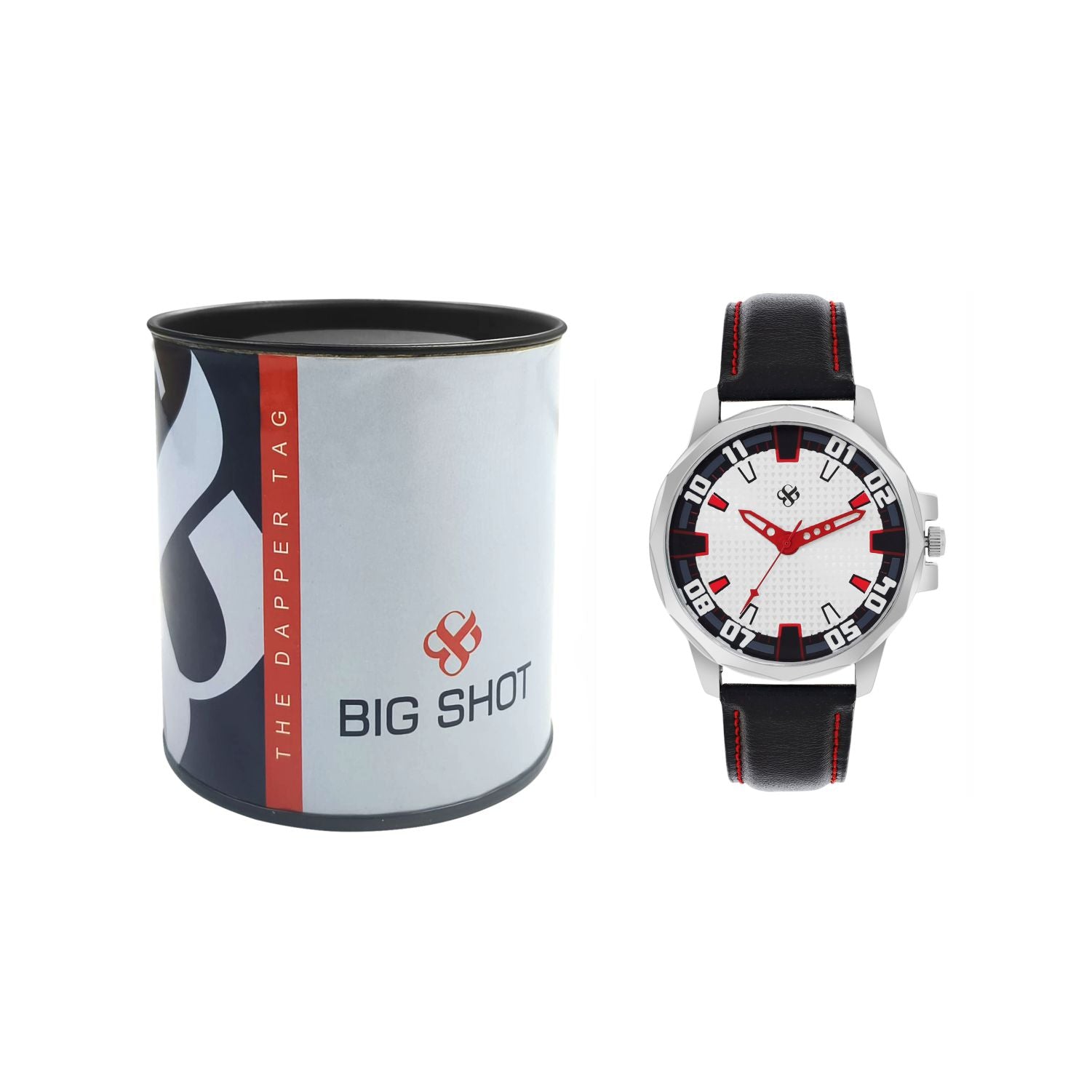 The Big Shot men’s watch combines timeless elegance with everyday utility. It features a refined cream dial adorned with bold Roman numerals, housed in a polished silver-tone case. The classic black leather strap ensures comfort and sophistication, making it an ideal accessory for formal occasions as well as daily wear.
